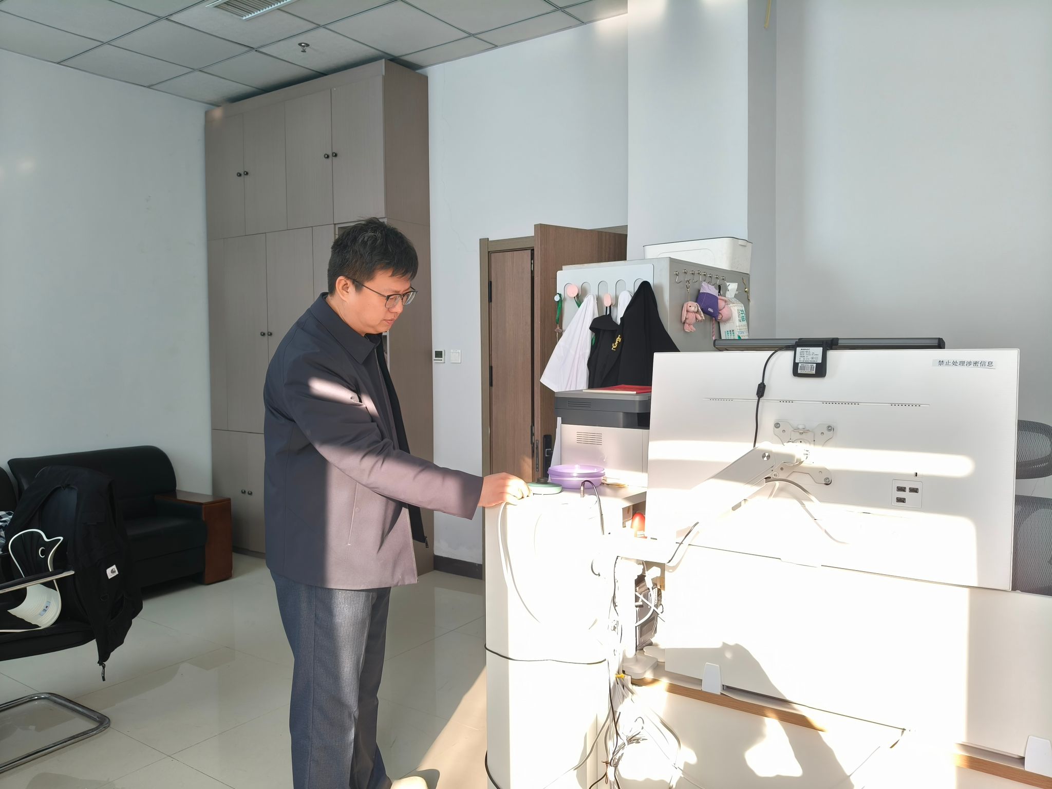 会后,陈国军亲自带队,对学院办公区域、教学场所及留学生公寓开展了全覆盖、无死角的安全隐患排查,重点检查了用电线路、设备运行、消防标识、疏散通道及环境卫生等情况,对发现的问题现场提出整改要求,立行立改,确保隐患及时消除。在留学生公寓,检查团队与留学生进行了面对面交流,开展安全宣传与教育。