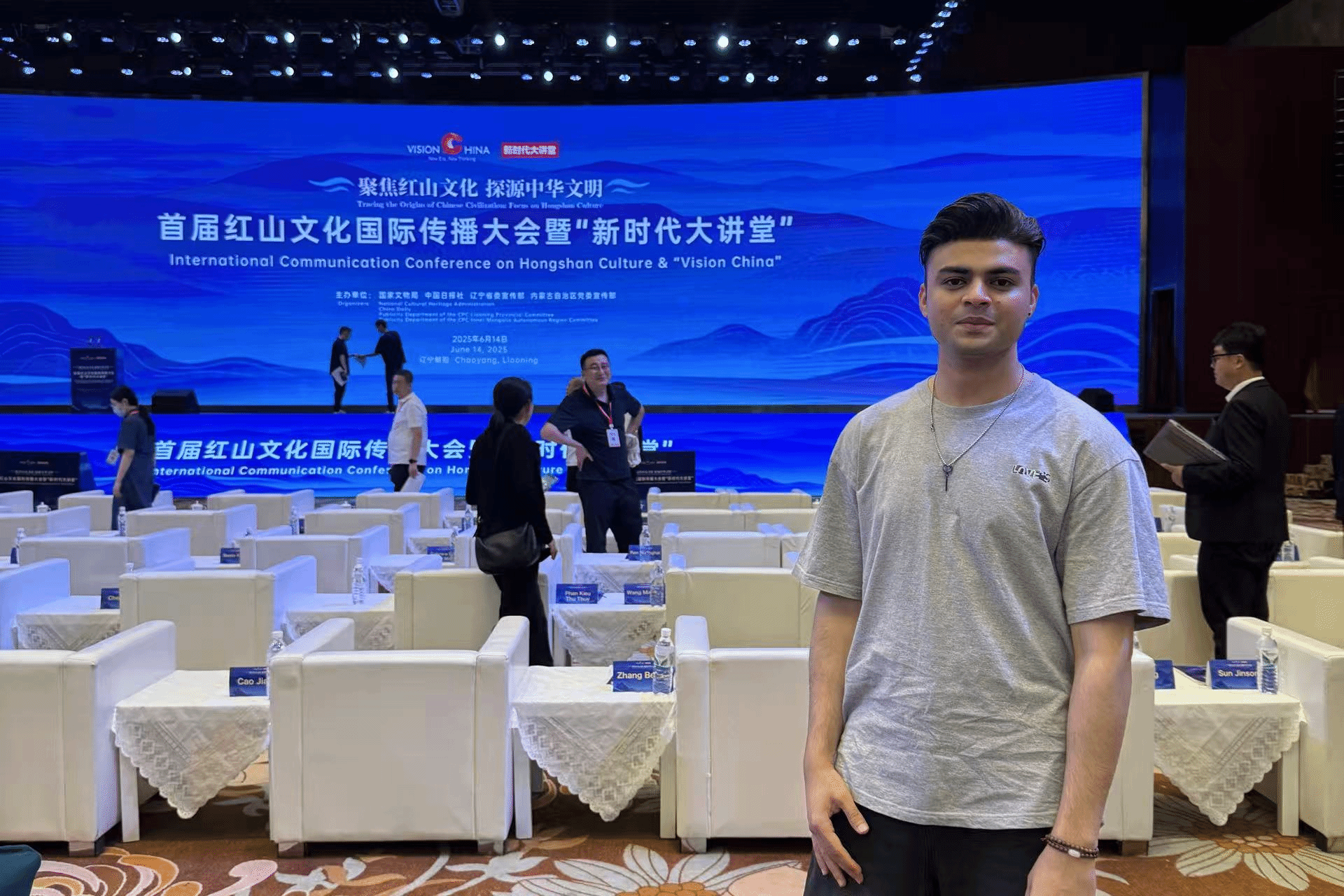 近日,以“聚焦红山文化 探源中华文明”为主题的首届红山文化国际传播大会暨“新时代大讲堂”在辽宁朝阳隆重举办,由大会同步发起的“中国让我没想到”讲好红山故事主题活动吸引了多国青年代表参与。我校受邀派出教师代表带领巴基斯坦留学生江平(JIANG PING)前往朝阳参会,与来自20个国家的外籍学生代表及15名高校教师一同踏上这场跨越千年的文化探寻之旅,在文明对话中传递中国声音。
